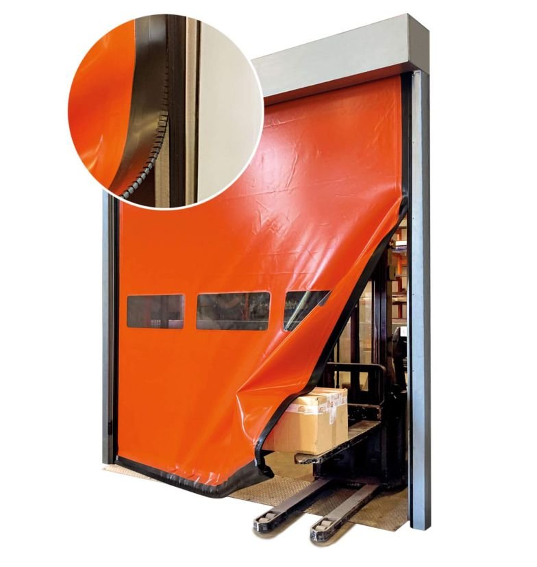 Rudhar Self Repairing Door are high-speed flexible doors with a parameter structure in galvanized or stainless steel, which is ideal rolling Curtain. The door curtain rides effortlessly within a track, thanks to the special profile and hinge designed by us, requiring low maintenance. The curtain is rolled up on a roller placed within the upper crossbeam.